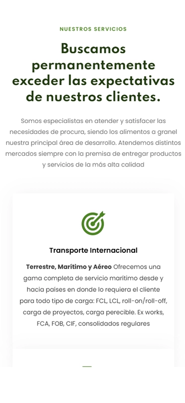 Uno de los desafíos más relevantes fue estructurar una arquitectura de contenidos clara que facilitara la navegación entre las diferentes líneas de productos —consumo directo e indirecto— y sus servicios asociados, como transporte internacional, asesorías de comercio exterior y representación marítima. Lograr que esta información técnica se presentara de manera accesible y visualmente atractiva fue un punto clave en el proceso creativo.