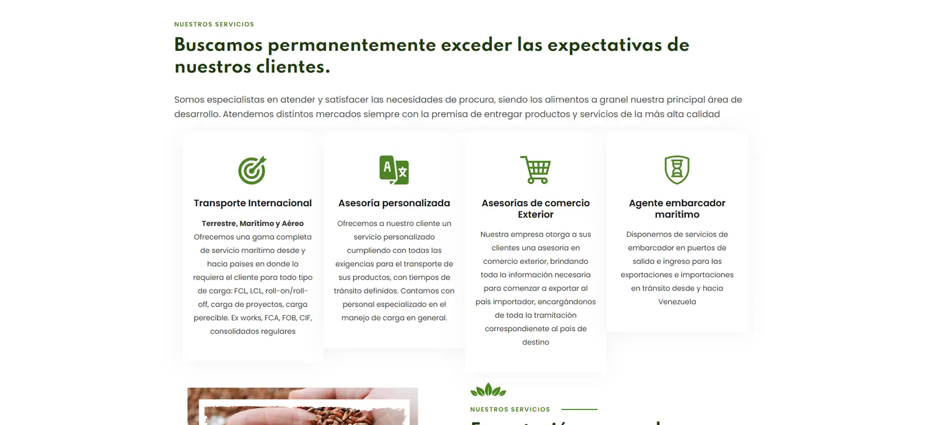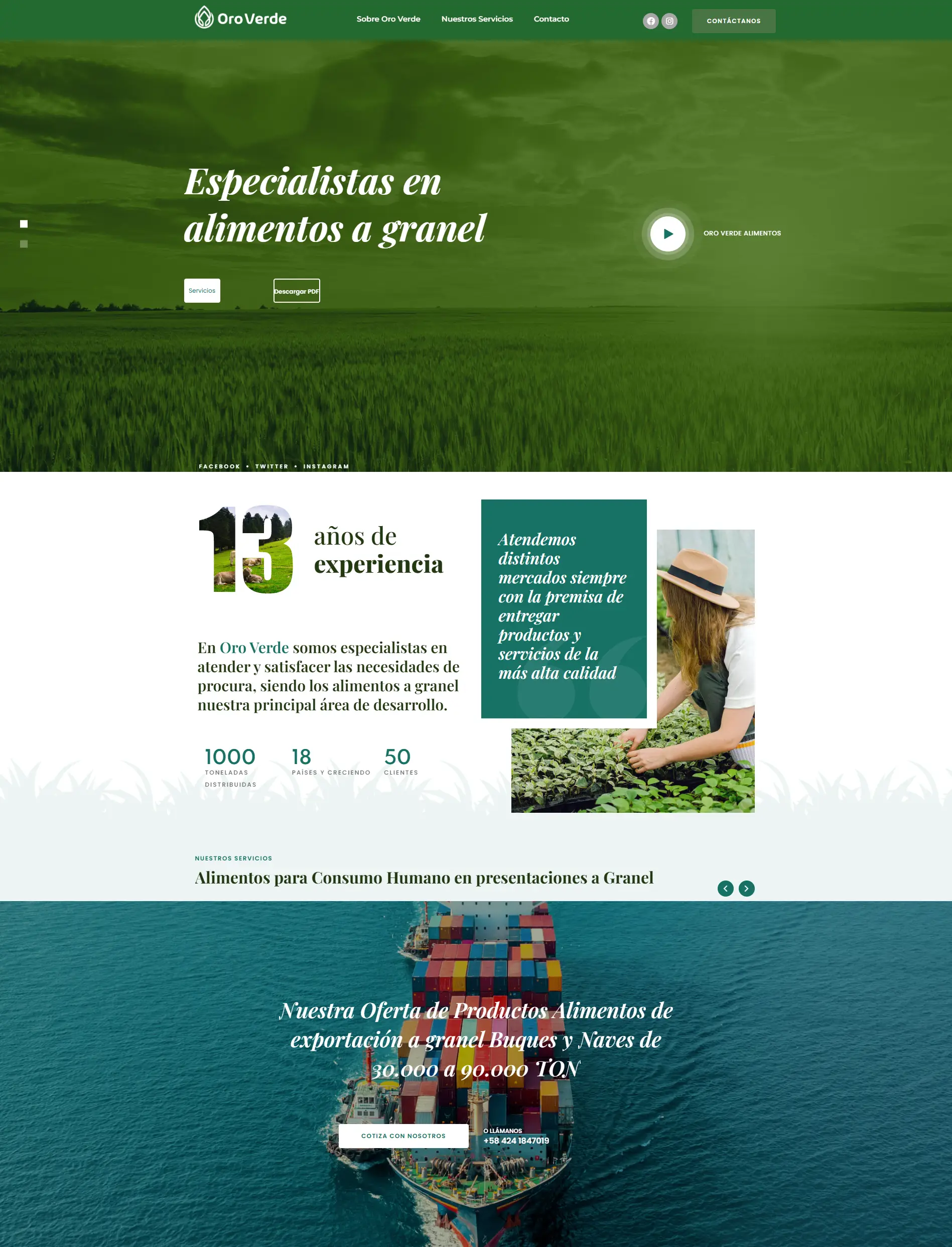 Desde el punto de vista SEO, se implementó una estructura semántica sólida, metadatos optimizados y una redacción orientada a palabras clave estratégicas relacionadas con el sector alimentario internacional. Esto permitió que la web no solo reflejara la calidad de los servicios de Oro Verde, sino que también mejorara su visibilidad digital y posicionamiento en buscadores.