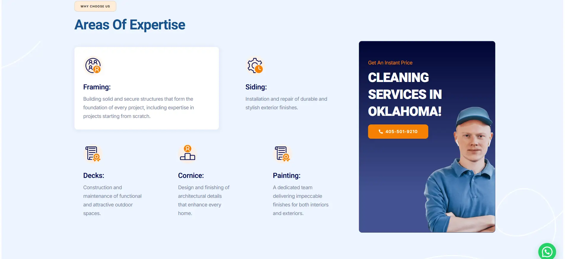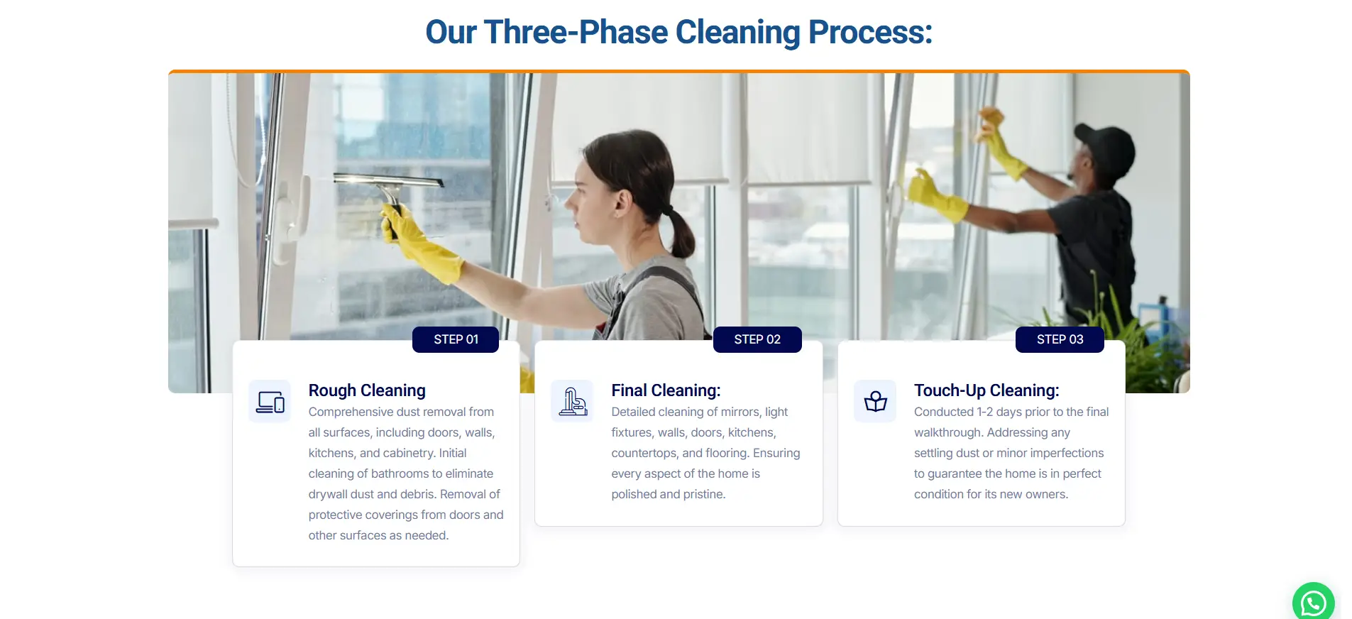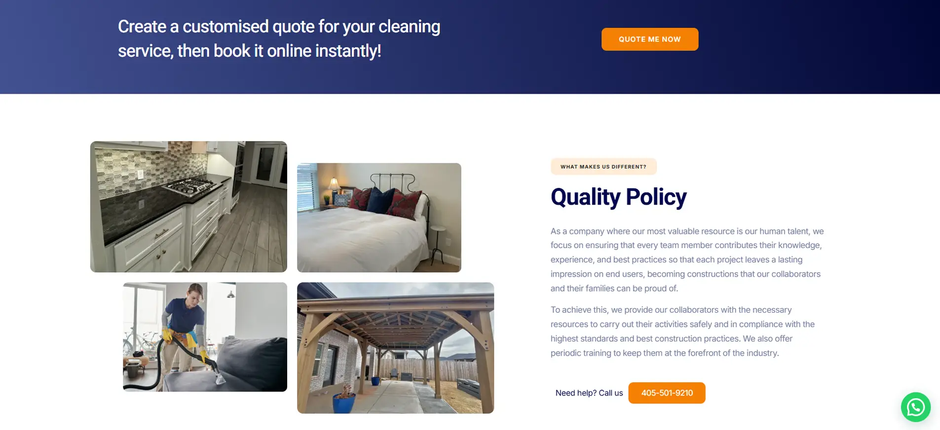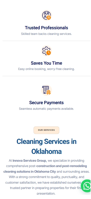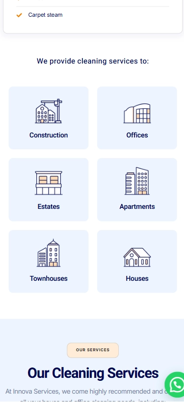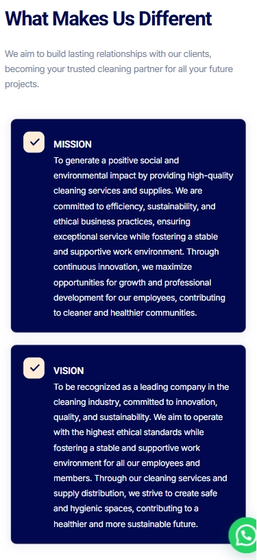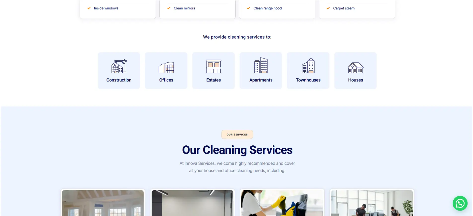 Cada sección fue diseñada para resaltar la experiencia de la empresa en el sector de mantenimiento y limpieza, facilitando la conversión de visitantes en potenciales clientes.